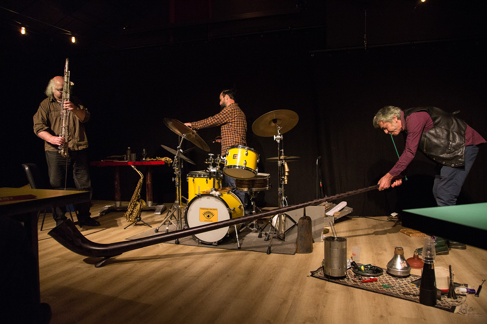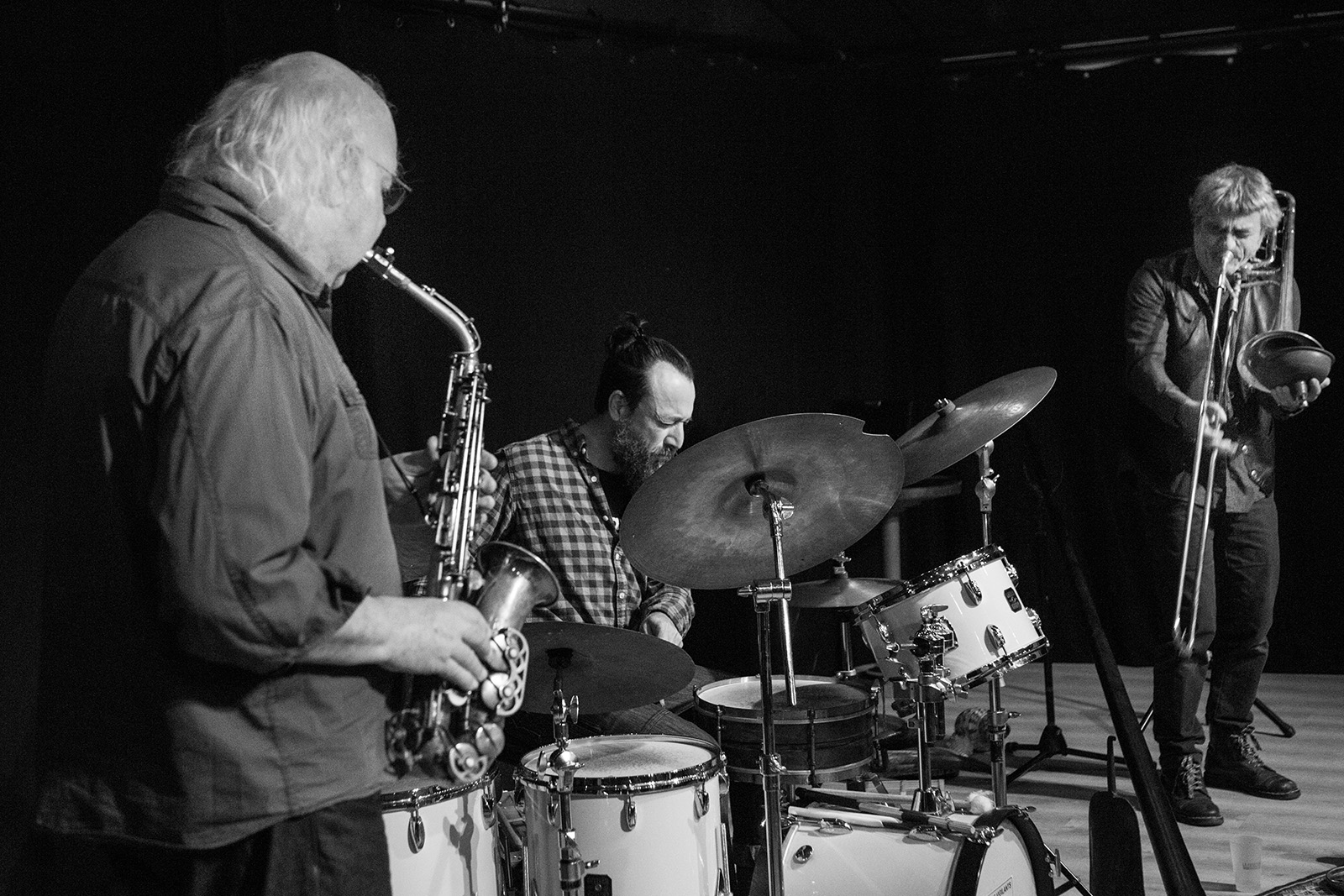 Dans sa « Dry Version » le trio Calmos (saxophone alto, trombone et batterie) joue un free jazz puissant et décomplexé. Dans le jeu des références, on pourrait citer le New-York Art Quartet ou l’Art Ensemble of Chicago…réussites musicales majeures de ces deux métropoles états-uniennes. Mais aussi penser à la sapidité de Nectars raffinés vinifiés dans les fins fond de nos campagnes françaises, à Latour-de-France (66), ou vendangés sur le domaine de la côtelette (21).