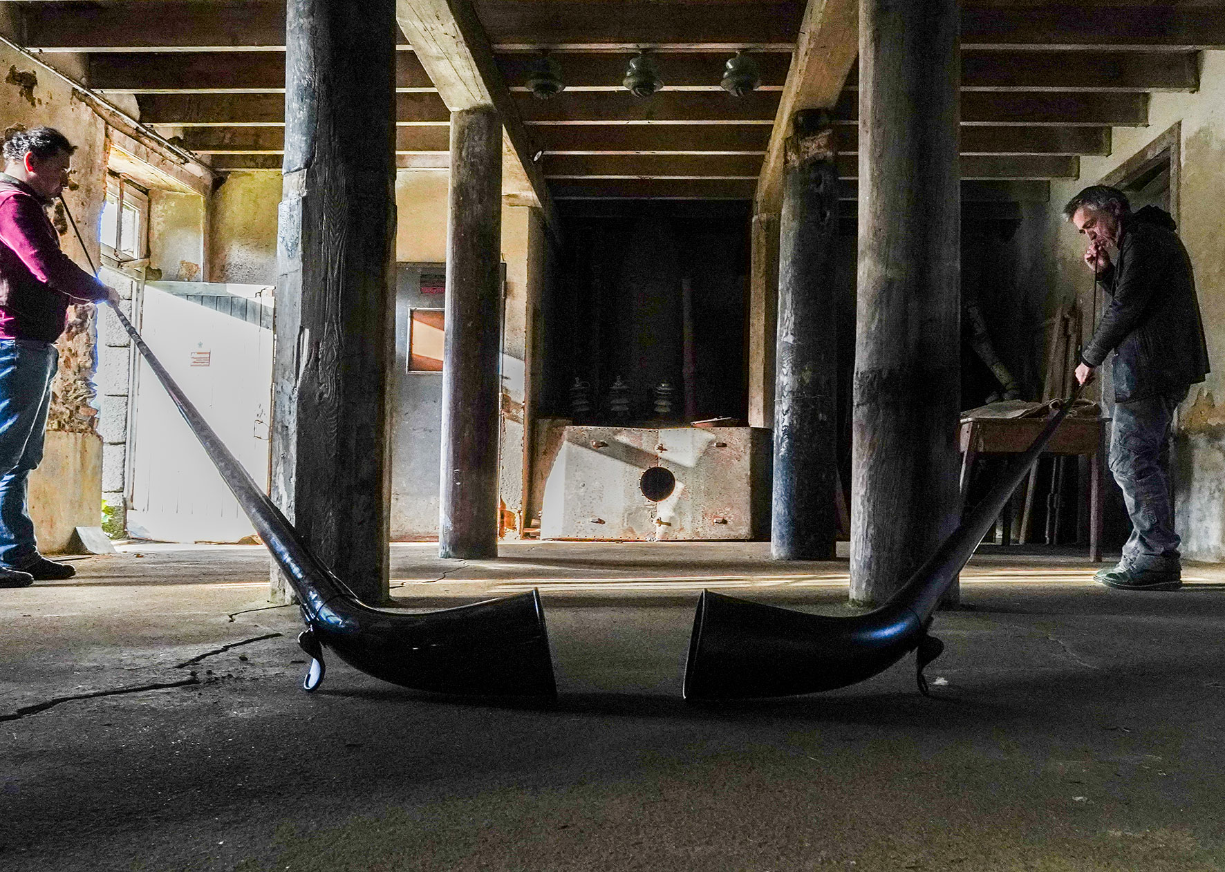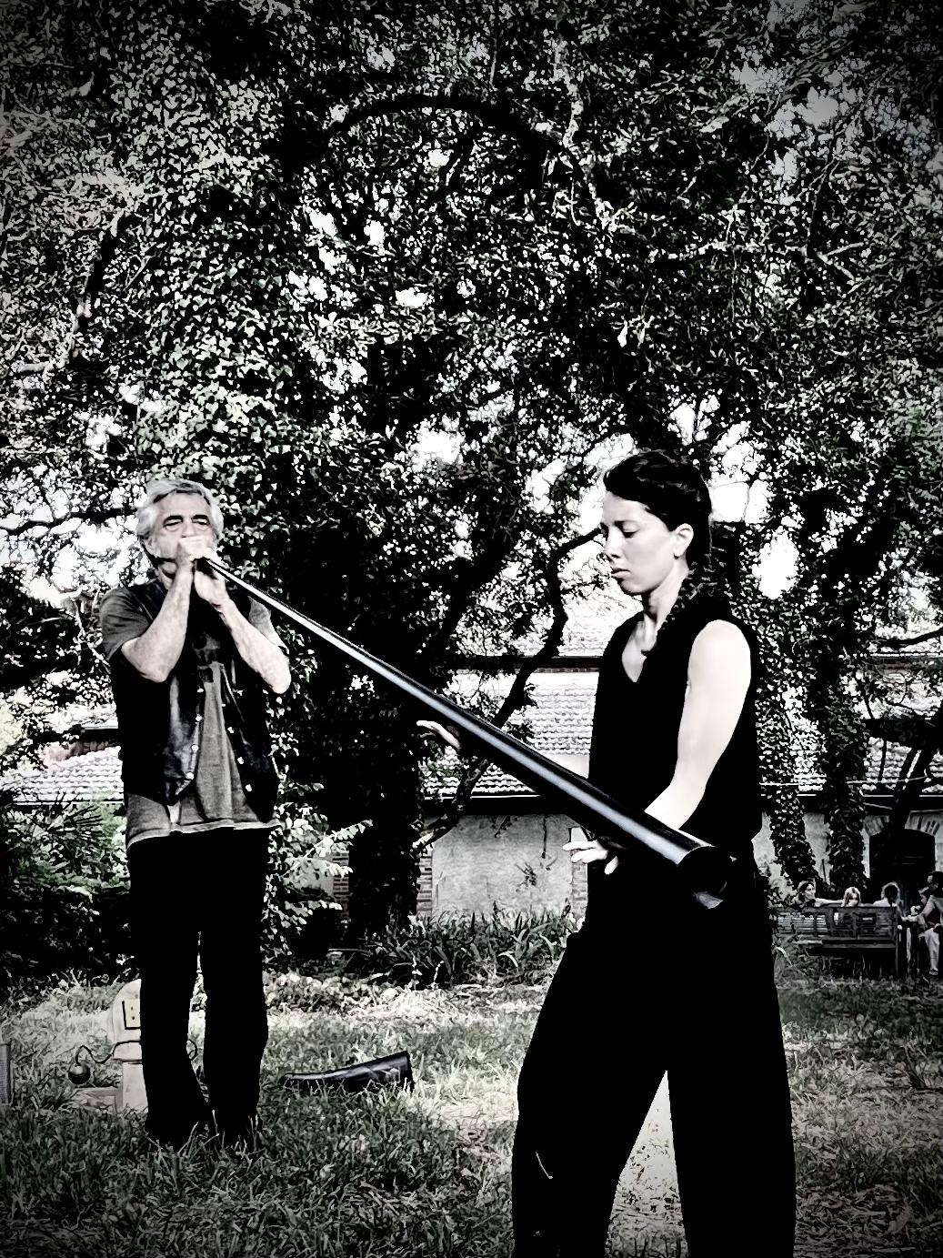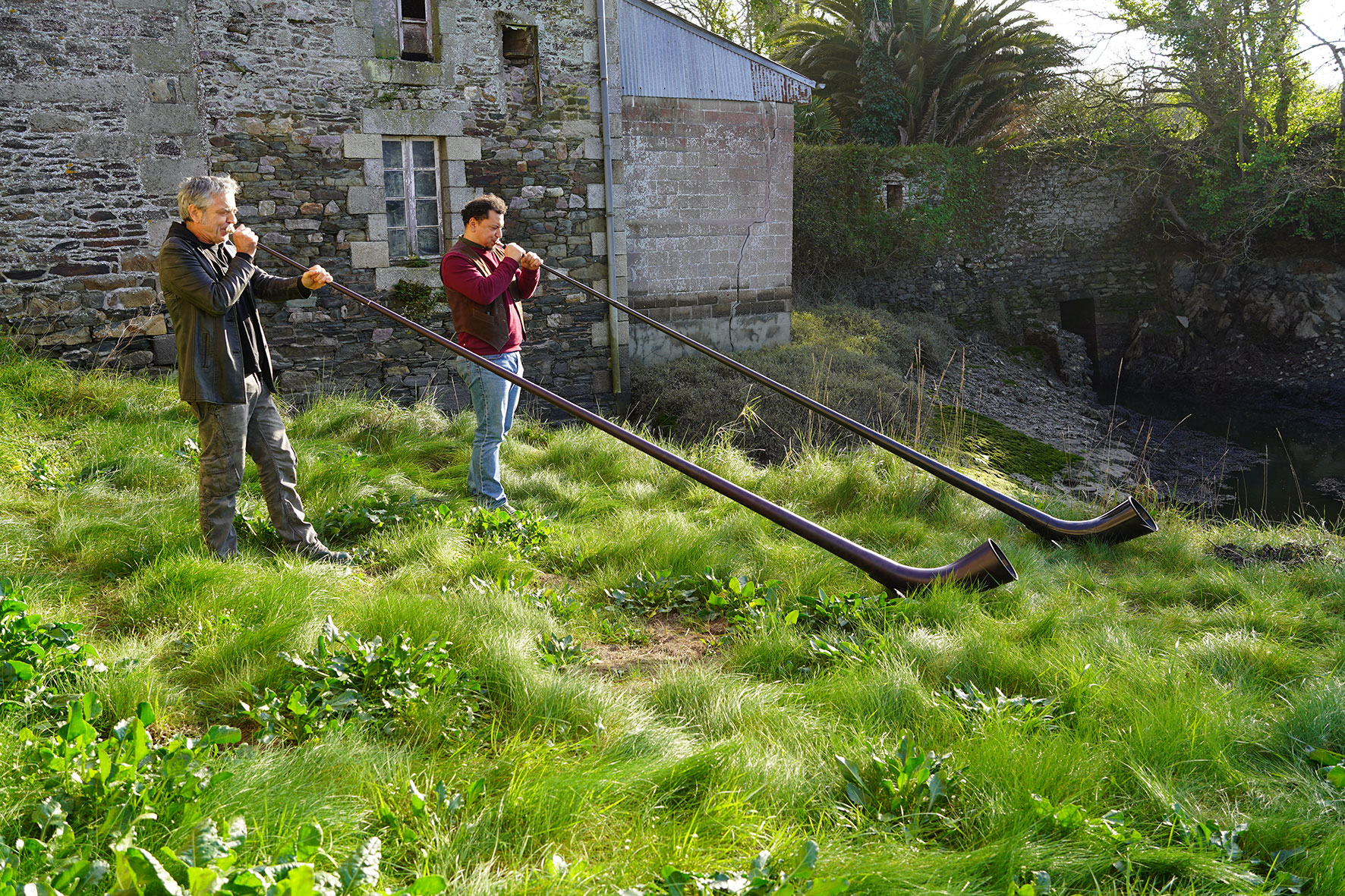 Adeptes du cor des Alpes, longue trompe conique servant pour communiquer en montagne, le trompettiste Christian Pruvost et le tromboniste Patrick Charbonnier, oblitérant pistons et coulisse, inventent une musique brute et singulière qui expérimente une virtuosité de timbres, de rythmes et une mise en jeu conditionnant et excitant échos et résonances affectives.
